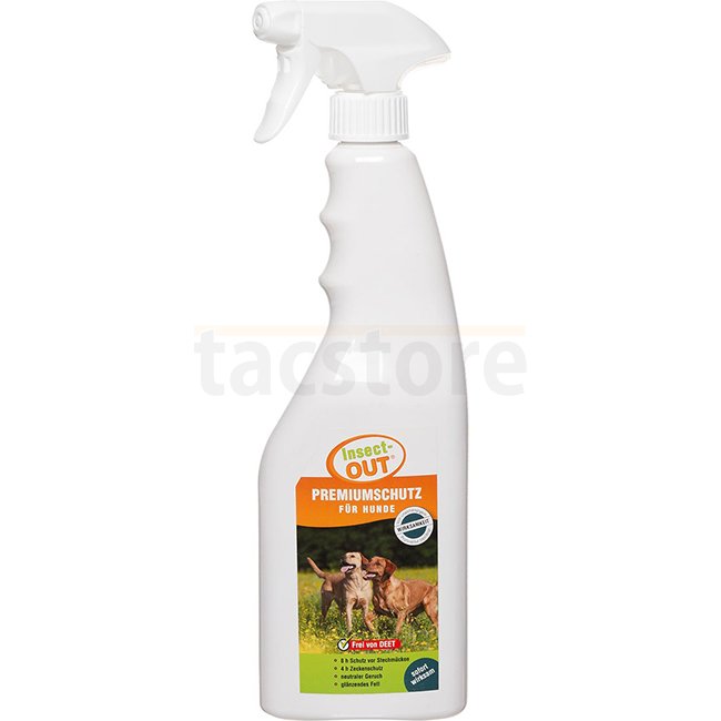 Insect-OUT Mosquito & Tick Protection Dogs 750 ml - for dogs' coat. 8h protection against mosquitos, 4h against ticks. Contains Icaridines, Margosa extract, Geraniol.