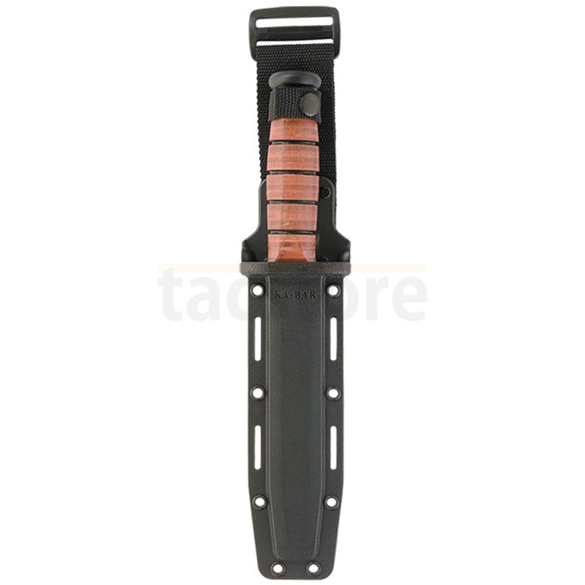 Ka-Bar Full Size Military Fighting Utility Knife Plain Blade & Hard Plastic Sheath - USMC: Famous fixed blade knife designed for US troops in WWII. Tang stamped USMC, MOLLE compatible sheath included. Made in the USA.