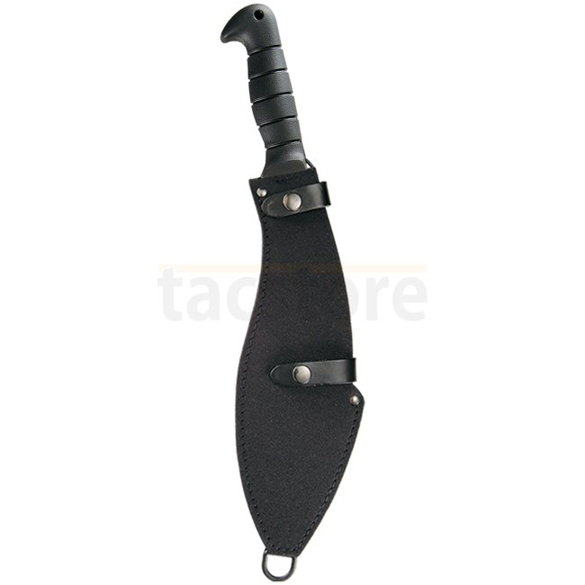 Highly durable and versatile Ka-Bar Kukri Machete excels in chopping and field use. With Leather/Cordura sheath. Weighs 590g, Blade Length 292mm, Total Length 432mm. Made with SK5 blade and TPR handle.