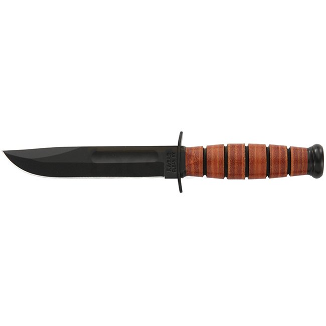 Ka-Bar Short Military Fighting Utility Knife Plain Blade & Leather Sheath - USMC
