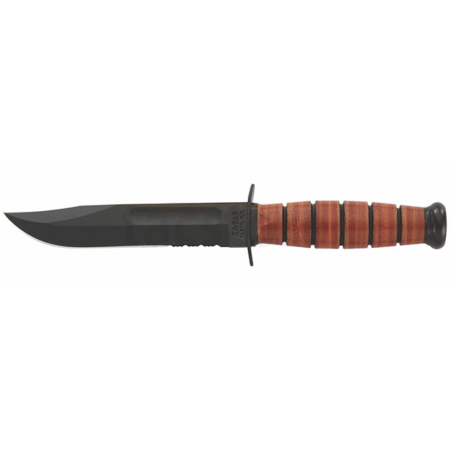 Ka-Bar Short Military Fighting Utility Knife Serrated Blade & Leather Sheath - USA