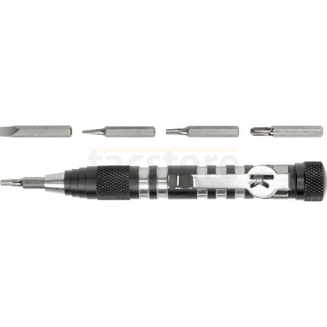 This is the right tool for adjusting your Kershaws. Switch a pocketclip, tighten a screw, or adjust the pivot tension with the TX-Tool. It includes five key bits for adjusting your Kershaws: T6, T8, T10, and a #2 Phillips® for most Kershaws, plus a slotted screwdriver bit for the pivot of the Kershaw–Emersons. A magnetic bit driver tip makes it easy to change bits. |