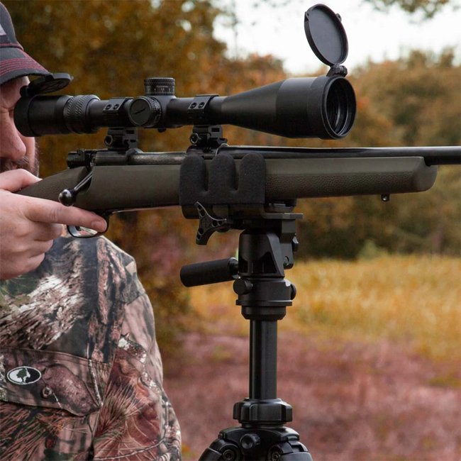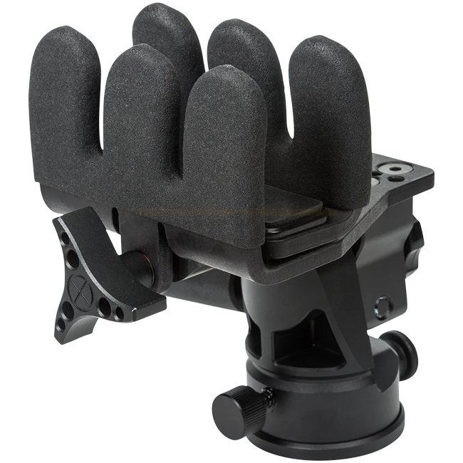 The Reaper Grip Direct Mount allows you to securely mount your rifle to your tripod. The direct mount simply screws onto your tripod's rotating center column and allows for 360° panning. The Reaper Grip features a patent-pending padded curved claw that conforms to your rifle's straight or tapered stock and chassis for unwavering stability. Without comparison, the Reaper Grip maximizes proper shooting technique outside of the supported prone position. The Reaper Grip allows for limited vertical movement that relies on the strength of the grip. Like all Reaper Grip systems, the Reaper Grip Direct Mount is compatible with both 3/8"-16 and 1/4"-20 (with included insert) threaded studs.