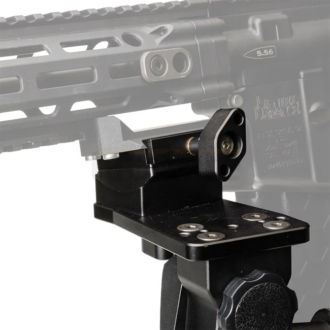 The Reaper Rail (Arca Swiss) Kit provides a platform to mount your rifle on a Tripod and boasts an adjustable, pivoting grip designed to accommodate both tapered and straight handguards and chassis without allowing recoil movement.