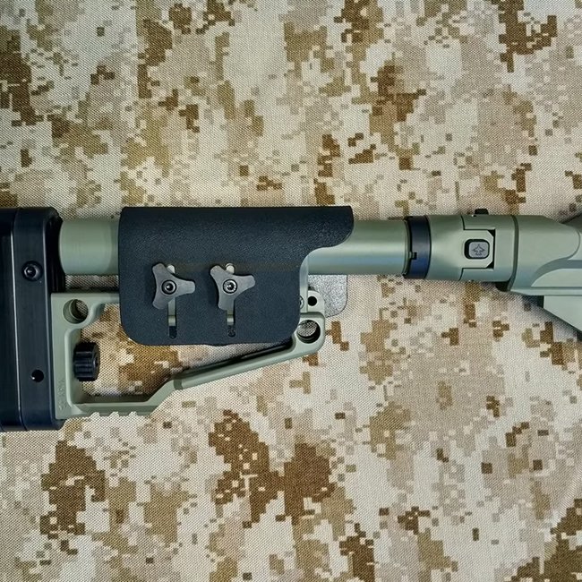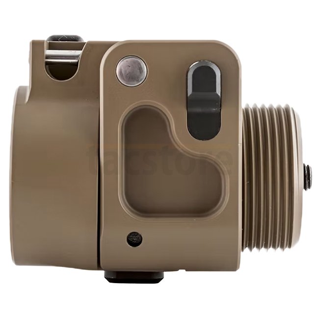 The CRC 9U038 is a robust folding stock adapter designed for rifle chassis featuring AR-style threading. Compatible with platforms such as the KRUK 7th series, MDT, and XLR, this adapter allows for quick folding of the stock to the side, enhancing portability and storage. Constructed from CNC-milled aluminum and steel, it features a durable Cerakote ceramic coating for corrosion resistance.