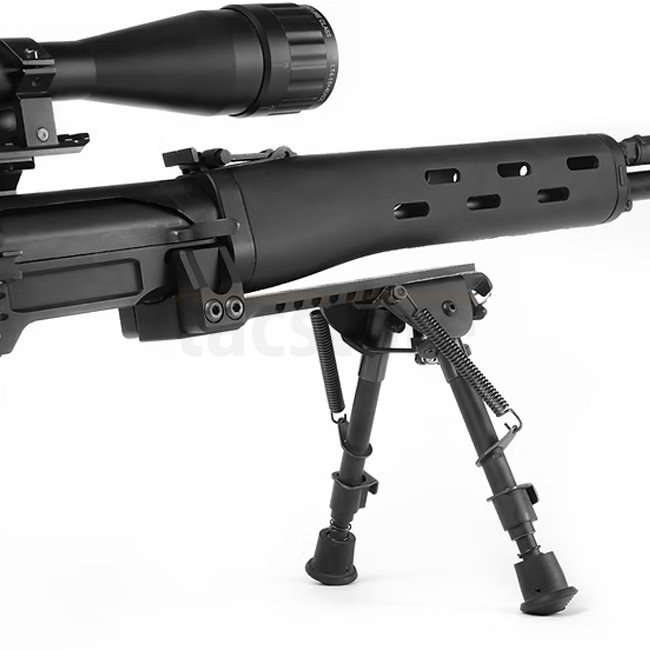 The CRC 9U002 Bipod Mount is compatible with the SVD/Tigr rifle. It is made of aluminum 7021 and steel, machined and anodized for durability. The Harris‑style bipod base clamps onto the barrel extension housing to provide a stable bipod attachment without adding stress to the barrel.