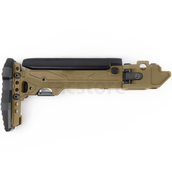 The CRC 5002/9034 is a side-folding telescopic buttstock designed for AK rifles with a milled receiver, including Arsenal-type platforms. It combines rugged construction with precise fit and adjustment for enhanced ergonomics and transport.