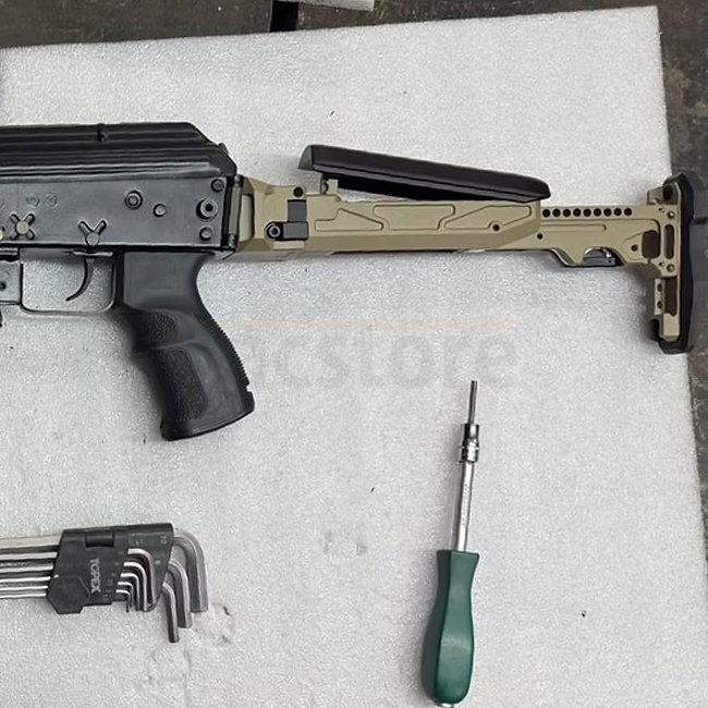 Remark: Not compatible with fixed-stock AKs (e.g. “paddle” style). Only fits rifles with 4.5 mm folding-stock hinge pins.