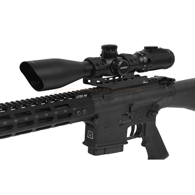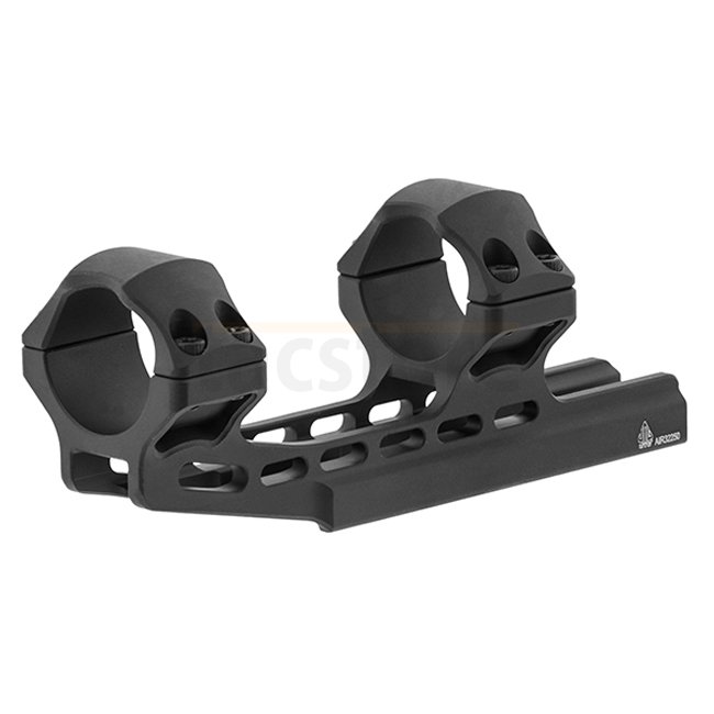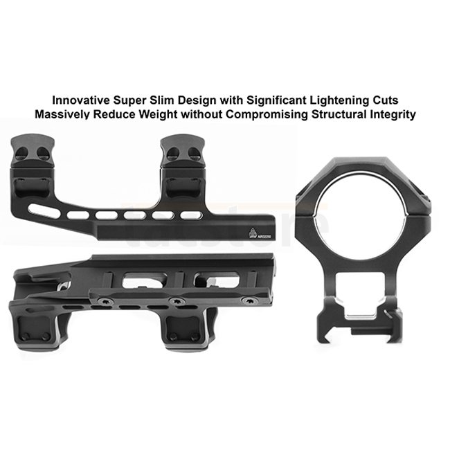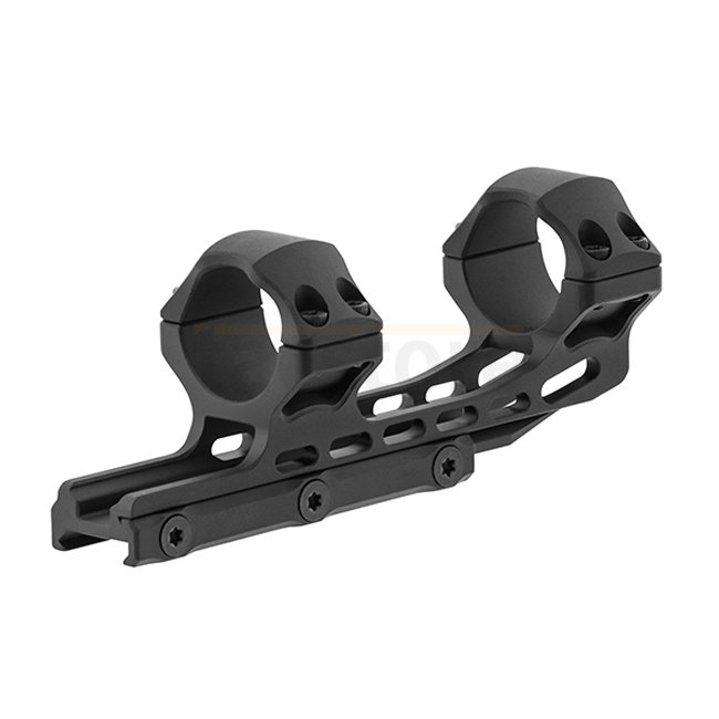 Mount for 30mm tube optics, 22mm saddle height, 50mm offset, high profile design. Fits up to 73mm outer objective diameter. Sturdy and sleek black finish.