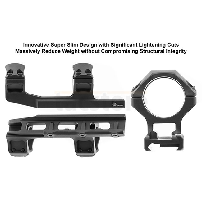 18 mm saddle height and fits 30 mm tube optics with up to a 65 mm outer objective diameter.