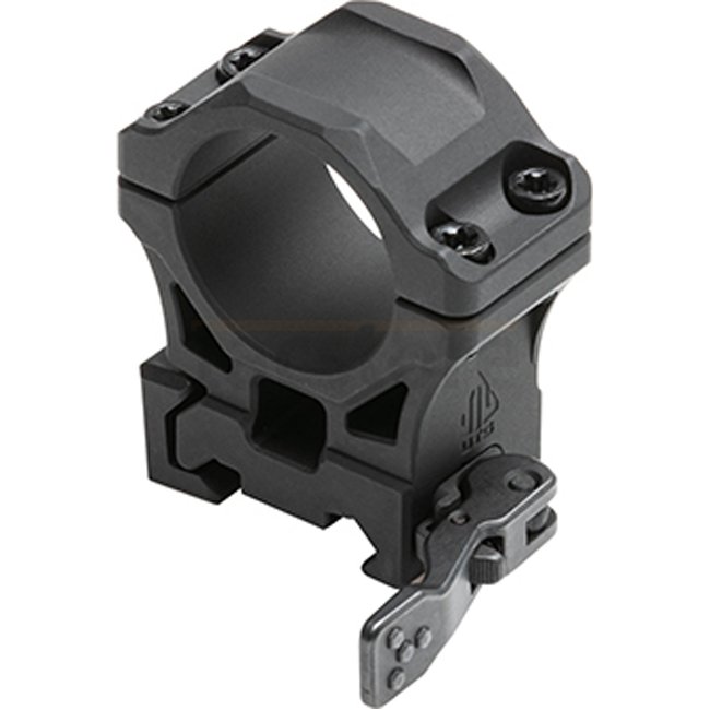 Leapers Accu-Sync QR 25.4mm Medium Profile Rings - Black: 27.7 mm center height. Suitable for optics with 1" / 25.4 mm tube diameter and an outer lens diameter up to 55 mm. Picatinny mounting, weight 116g.