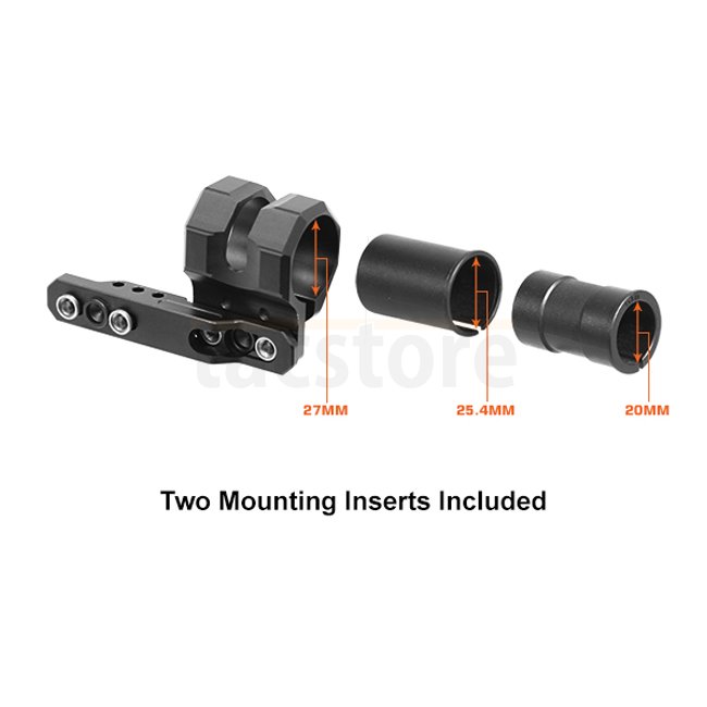 • Polymer inserts to accommodate 27mm, 25.4mm or 20mm flashlights