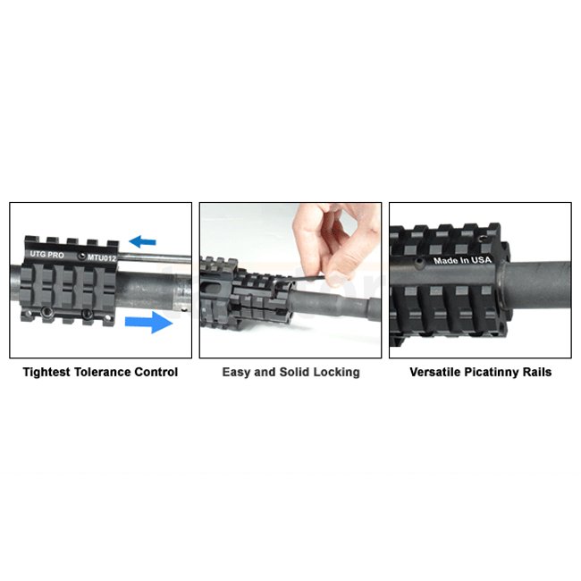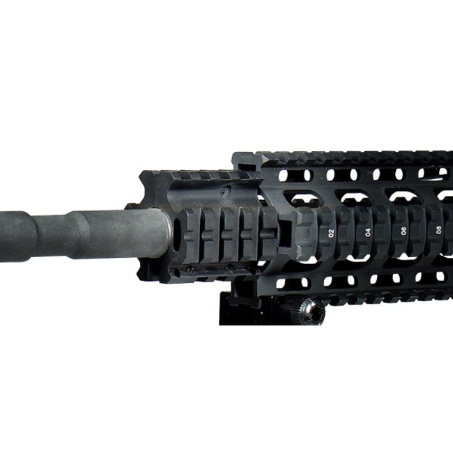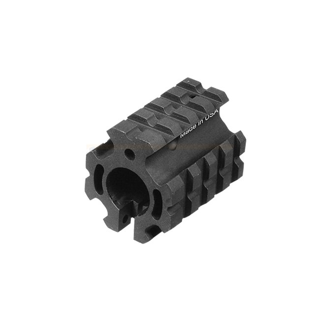 Enhance your rifle with the Leapers Quad-Rail Gas Block. Made of lightweight aluminum, this accessory measures 45.7 x 38.1 x 43.2mm, weighing only 36.9g.