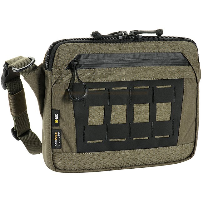 M-Tac Admin Bag Elite - Olive / Black: Stylish design & functionality. Made of Cordura 500D & Cordura Hex - extra strong & easy to clean. Features YKK zippers & Woojin buckles. 2 pockets, adjustable shoulder strap. Inner compartment lined with velour, Vel