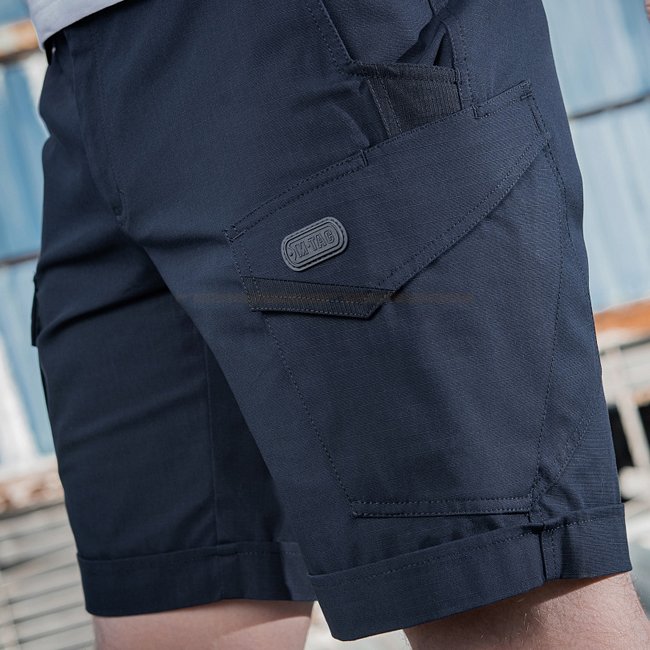 M-Tac Aggressor Shorts - Dark Navy Blue - S: Lightweight, water and dirt repellent shorts made of polyester, cotton, and spandex blend. Comfortable with wide pockets and designed for movement. Perfect for training, shooting, work, travel, and walks.