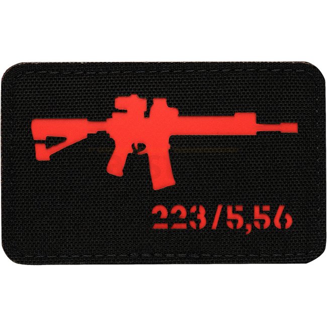 M-Tac AR-15 223/5.56 Laser Cut Patch - Red: Durable Cordura 500D Nylon front and hook surface back. Dimensions 80 x 50 mm.