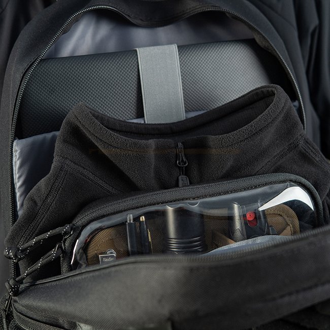 There are also dedicated pockets on the side for water bottles. Both regular plastic 1-liter bottles and Nalgene flasks will fit perfectly there.