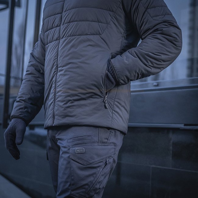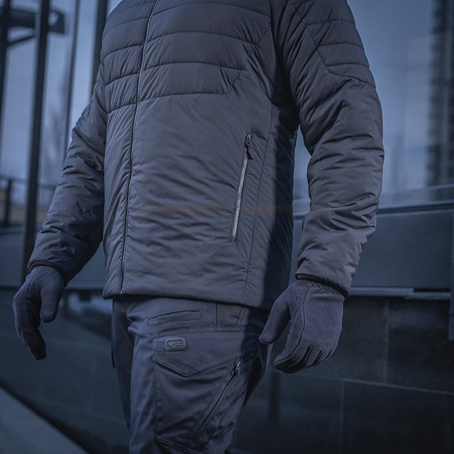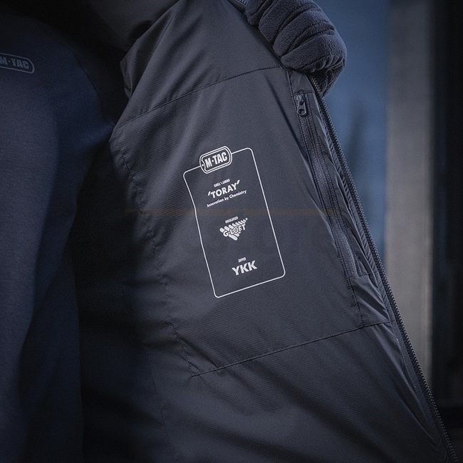 The M-Tac Berserk Jacket in Dark Navy Blue, size 2XL, combines innovative design and top-quality materials. Made of lightweight, water-repellent nylon from Toray with Austrian G-Loft insulation, offering warmth and moisture-wicking properties. Features zi