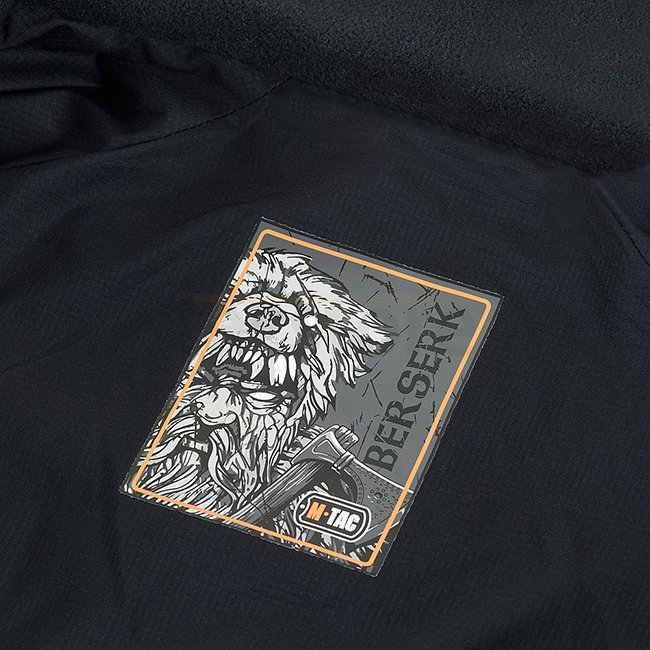 The Berserk jacket has two zippered side pockets and one inner pocket for documents and other valuables. The hem of the hood and the cuffs of the sleeves have a soft elastic band that prevents cold air from getting inside. Reflective brand logo on the chest.