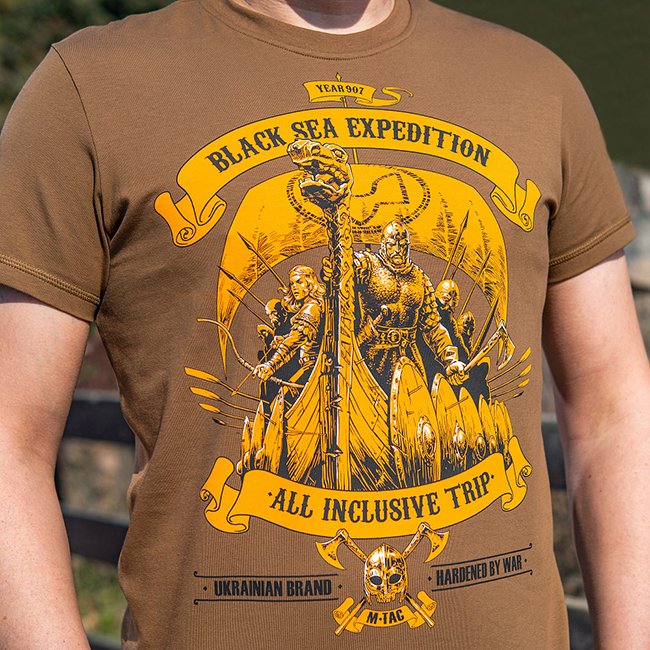 M-Tac Black Sea Expedition T-Shirt in Coyote XL - 93% cotton / 7% elastane blend for comfort and durability. Perfect for outdoor adventures.