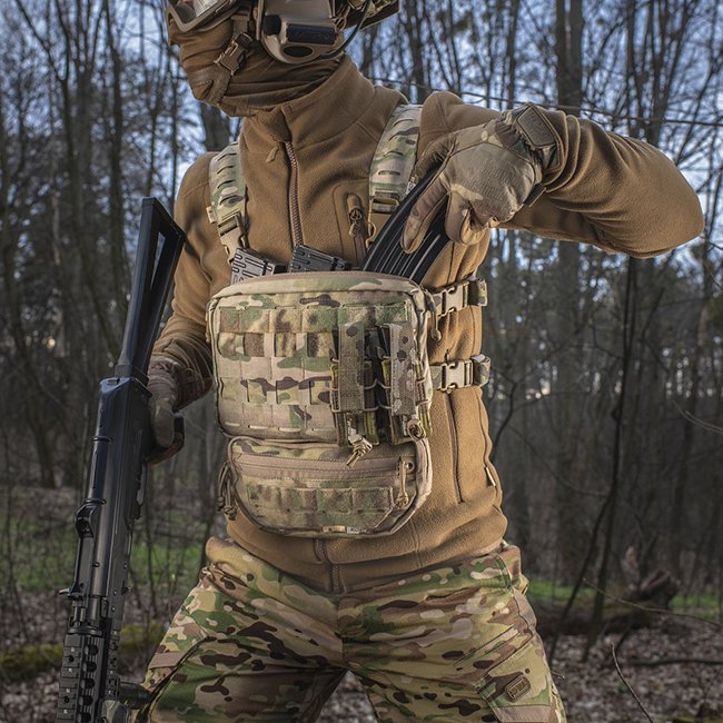 The Chest Rig Military Elite combines comfort and versatility. Inside the pouch there is an organizer that allows you to place necessary items. It is equipped with a MOLLE Laser Cut front panel and fastex quick dump system. The slim profile of the pouch and the H-type harness system allows you to free your hands. In addition, with the help of modular inserts fastened with Velcro, you can significantly expand the functionality to your personal needs.