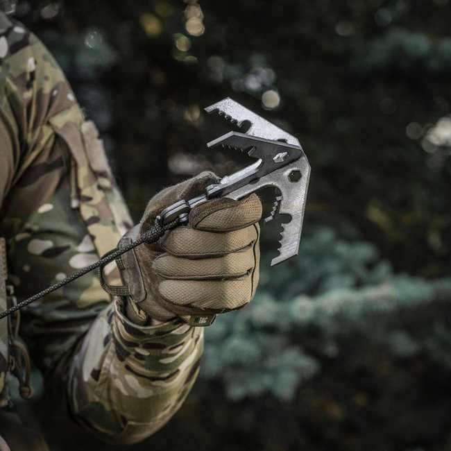 The tactical grapple hook from M-Tac is a universal tool that will become a useful addition to your equipment. A grapple can come in handy in various situations: for demining, breaking down suspicious objects when they are possibly mined, and checking paths and passages. It can also be used as a trawl.