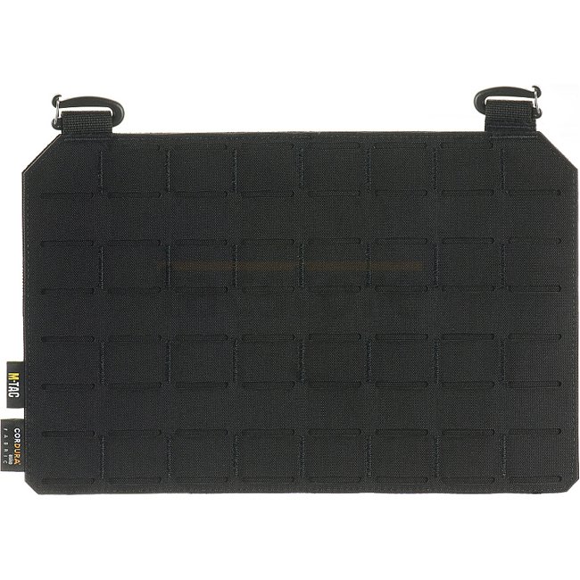 M-Tac Cuirass QRS Plate Carrier Front Panel XL - Black. Made of Cordura 500D. Attaches to XL plate carrier with Woojin hooks and Velcro. Holds up to four magazine pouches.