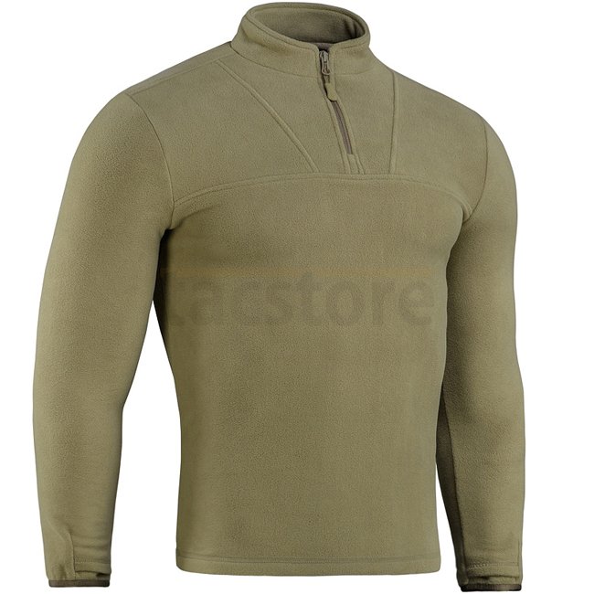 The M-Tac Delta Fleece Jacket in Tan is a warm and comfortable pullover with thumb holes to keep your hands warm while keeping your fingers free. Perfect for cold weather use as a second layer or on its own. Made of 100% polyester.
