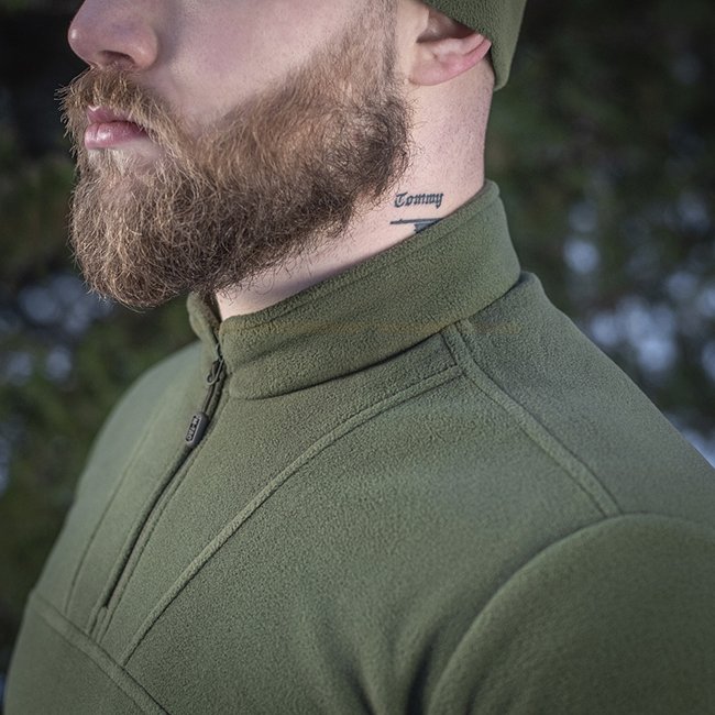 M-Tac Delta Polartec Fleece Jacket - Army Olive - S. Thumb holes in sleeves for warming palms while keeping fingers free. Pleasant to body, fits perfectly, does not deform after washing, and dries quickly.