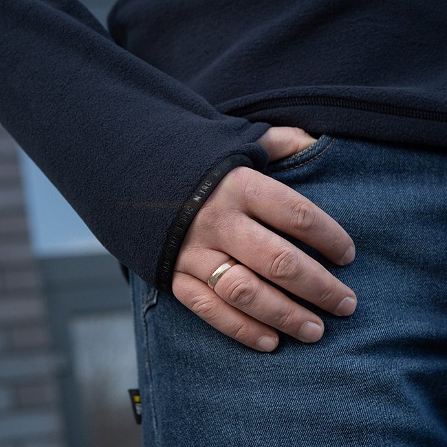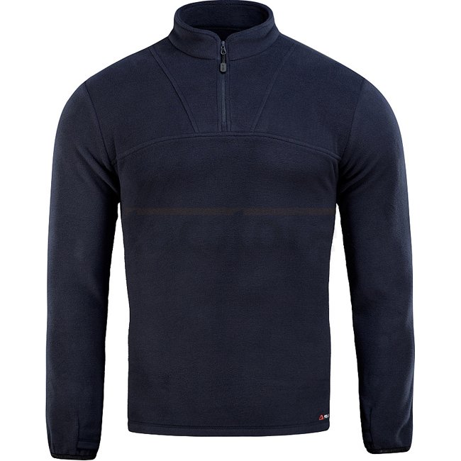 The M-Tac Delta Polartec Fleece Jacket in Dark Navy Blue XS size features thumb holes in the sleeves for warming the palms while keeping fingers free. This pullover is comfortable, figure-flattering, and maintains its shape and quick-drying properties aft