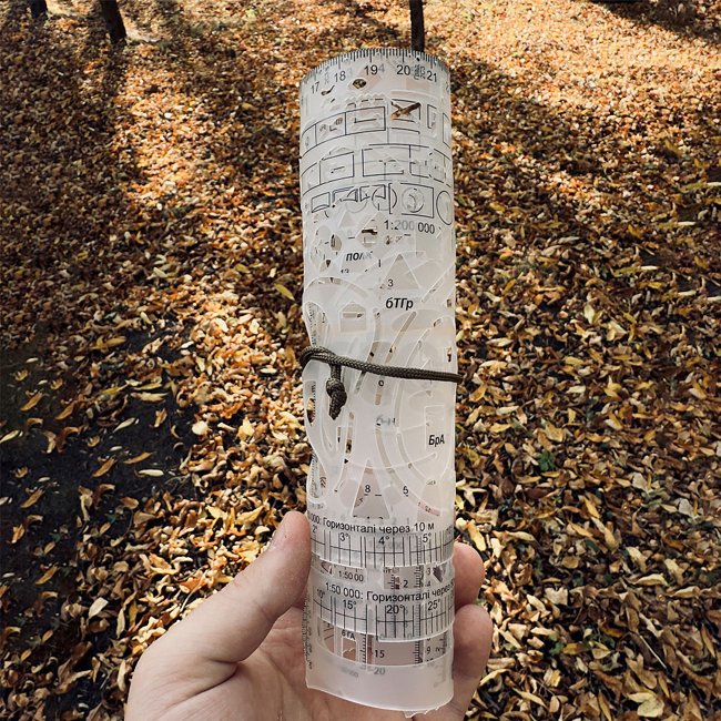 In contrast to conventional, shiny rulers, this model is made of a transparent, flexible and anti-reflective material. This avoids reflection from the sun and reduces the risk of your position being discovered.