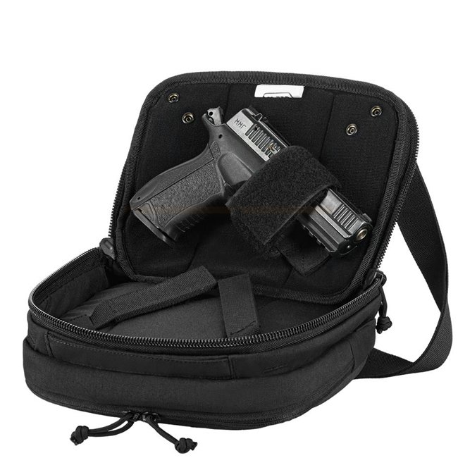 The quick release system enables lightning-fast access to the weapon. For right-handed people, the right strap is attached to the right side of the back pocket. To draw the weapon, the bag is opened with the left hand, while the right hand takes over access. For left-handed people, the system works in reverse - the left loop is attached and the right hand opens the bag.