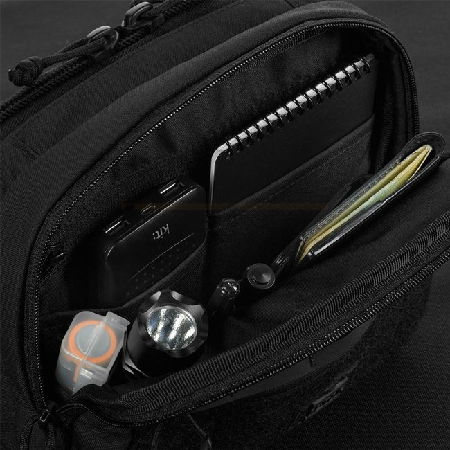 The EDC BAG ELITE offers well-thought-out organization and versatile uses. The front pocket is equipped with a practical EDC organizer that safely stores important items such as a notebook, power bank or flashlight. In the back there is a special compartment for storing a pistol, which is equipped with a quick access system. Thanks to the well-thought-out design, the bag is suitable for both right- and left-handed people.