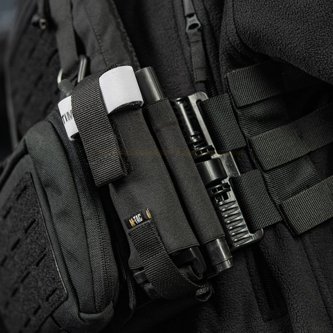 The fastening for the tourniquet is made of a wide elastic band, which reliably fixes the tourniquet. Additional fixing elements are webbing, which make it impossible for it to fall out accidentally. Also, in this generation, the designers of the brand added an elastic band for attaching a marker. Thanks to the well-thought-out design of the package, you can instantly remove the tourniquet and apply it very quickly. This model is attached to the frontal Velcro panel under or on the side of the flap of the plate carrier, thereby increasing its functionality.