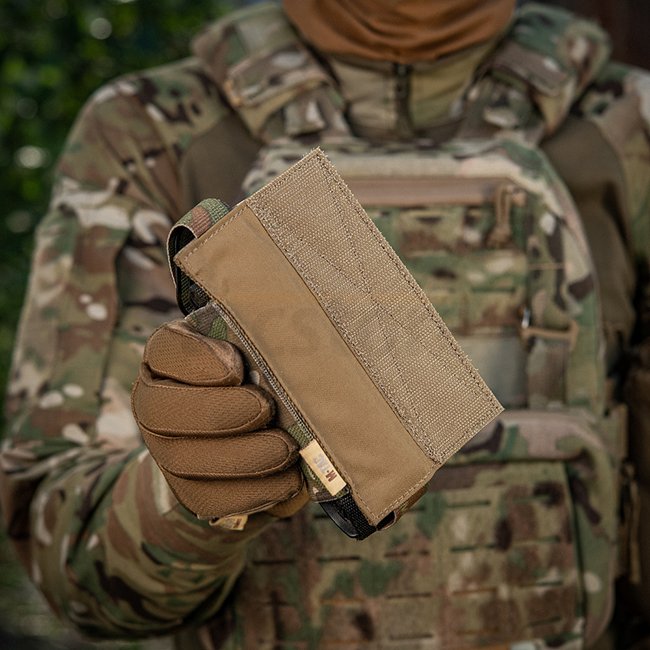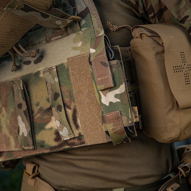 Attachment is by a wide elastic strap, which reliably fixes the tourniquet. The inner wall is made of a nylon strap, which allows you to easily remove the tourniquet from the pouch. Additional fixing elements are sewn from high-quality Cordura 500D material. Thanks to the well-thought-out design of the pouch, you can instantly remove the tourniquet and use it very quickly. This model attaches to gear using the Velcro interface.