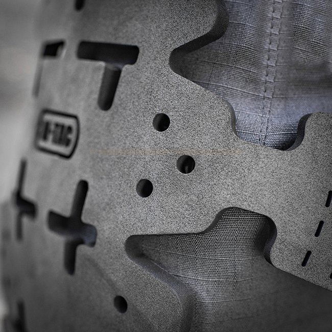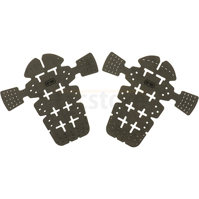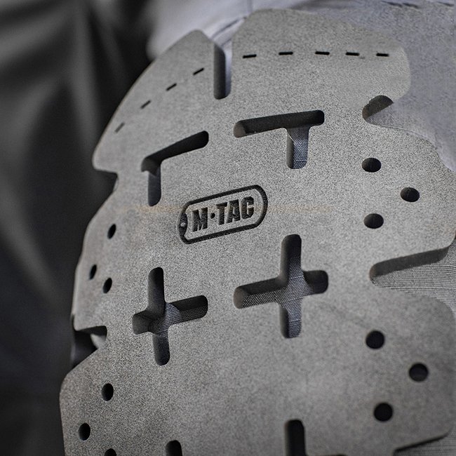 Made of a soft, 7mm thick EVA polymer material. EVA can restore its previous geometric shape even after a long stay in a deformed state. The knee inserts have cutting lines: the side one corresponds to the knee width, and the lower and upper ones correspond to the height, so you can adjust them to your knee joint size. They have ergonomic slots for comfortable bending of the leg and holes for additional ventilation.