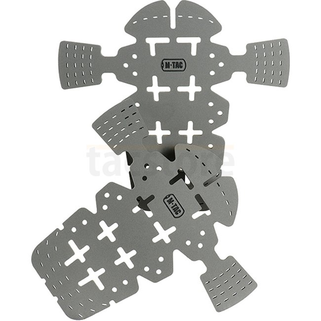Made of a soft, 8mm thick EVA polymer material. EVA can restore its previous geometric shape even after a long stay in a deformed state. The knee inserts have cutting lines: the side one corresponds to the knee width, and the lower and upper ones correspond to the height, so you can adjust them to your knee joint size. They have ergonomic slots for comfortable bending of the leg and holes for additional ventilation.