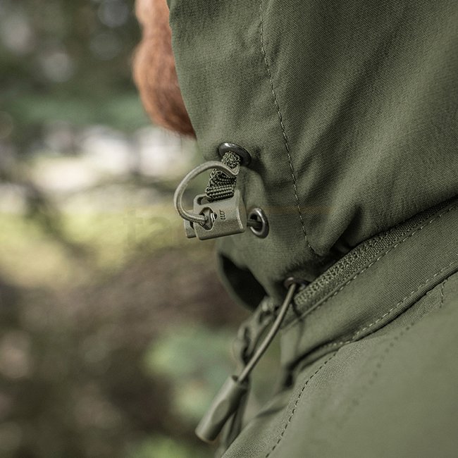 M-Tac Flash Jacket - Dark Olive - S: Stylish lightweight windbreaker providing maximum comfort in cooler seasons, optimal protection from elements with durable lining. Made of windproof fabric (98% nylon, 2% elastane) with fixed, adjustable hood and well-