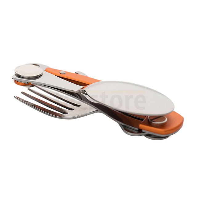 Functional cutlery set for travel includes the most necessary items: spoon, fork, bottle and can opener. All this in one body looking like a multitool. Multitool for food if you will so...