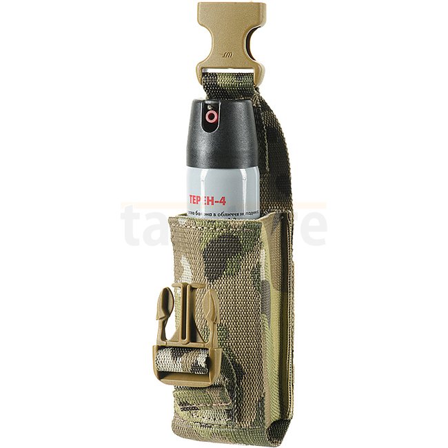 The self-defense pouch locks in the upright position and is easy to remove. It can also be adjusted to the size of your spray. The product attaches to your belt or gear with a MOLLE interface.