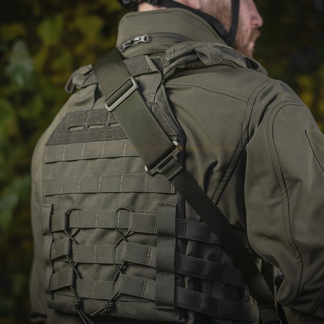 M-Tac Gun Belt Single Point Sling in Ranger Green - Designed for easy rifle handling, ensuring your firearm is always within reach. Quick-drop system and adjustable length for quick firing position setup.
