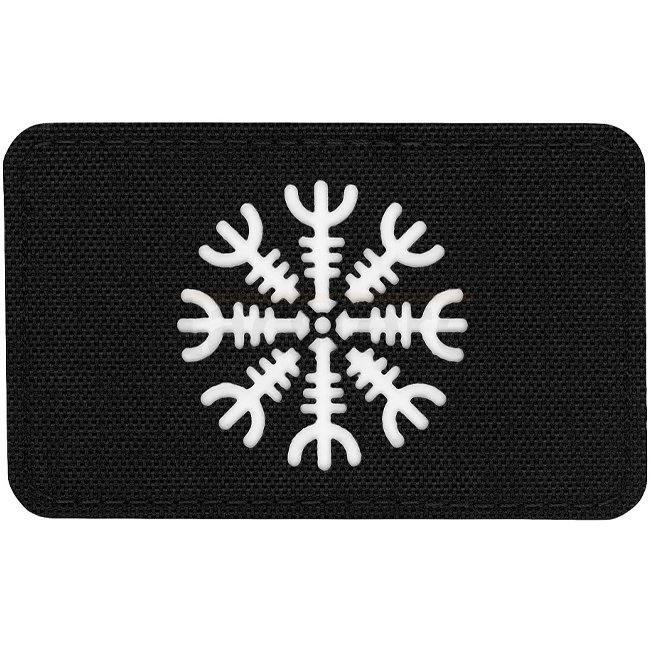 M-Tac Helm of Terror Horizontal Laser Cut Patch GID - Black. Front: Cordura 500D, Back: Hook surface. Dimensions: 80 x 50 mm.