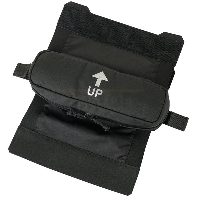 The medical pouch is installed in the pocket of the rear part of the plate carrier. An additional removable Velcro layer on the flap of the pouch will help to integrate it into any plate carrier where the lower part of the back pocket closes with Velcro, no matter if the hook or loop part is needed.