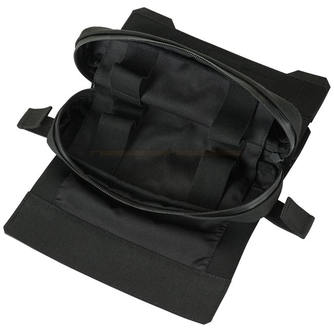 This roll consists of two parts: an outer cover and the internal IFAK (Individual First Aid Kit) pouch. The outer cover is adjustable in volume and provides open two-way access. By pulling the strap it can be quickly removed. The pouch is connected to the cover by means of Velcro to prevent accidental loss. Inside the pouch an organizer made of rubber bands for attaching medical supplies (not included) can be found. The front flap of the pouch is equipped with an identifier in two colors.