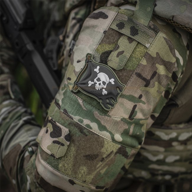 M-Tac Jolly Roger Rubber Patch - Olive. PVC front with hook surface back, 64 x 64 mm.
