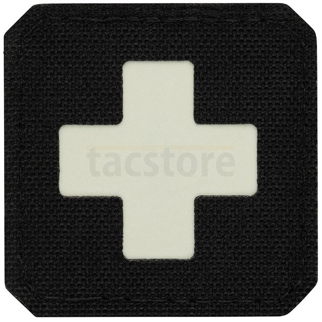 M-Tac Medic Cross Laser Cut Patch GID - Black, made of Cordura 500D front and hook surface back, 45 x 45 mm dimensions.
