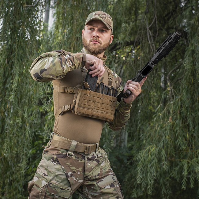 The Modular Chest Rig is a Tactical Chest Rig that combines versatility and comfort. Made of high quality and durable Cordura 500D material. The front panel is designed for three magazines and is securely attached to the base using Woojin hooks and Velcro. Special straps fix the magazines and prevent them from accidental loss. The frontal MOLLE system surface allows to attach additional gear. Additionally, this panel can be removed and replaced with any other modular insert compatible with Velcro fastener.