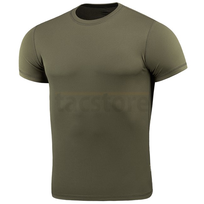 M-Tac Moisture-Wicking Summer T-Shirt in Olive, XS. High-tech material wicks moisture, quick-drying, optimal heat regulation. Elastic fabric for body-hugging fit & freedom of movement. Anatomical cut accentuates figure, flat seams prevent rubbing. Materia