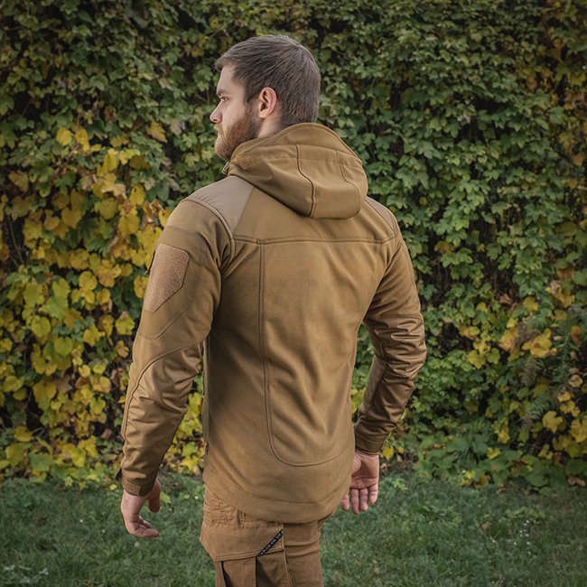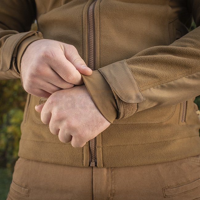 The M-Tac Norman Windblock Fleece Jacket in Coyote size XS is perfect for windy and cold weather. Made with WindBlock material and Softshell inserts, it can be used as an outer layer or insulation. WindBlock membrane reflects 80% of body heat inward, idea