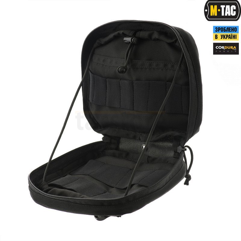 M-Tac Organizer Pouch Elite - Black: Versatile pouch for first aid, EDC, or survival kit. Attaches to MOLLE systems on backpacks and vests. Made of durable Cordura 500D. Dimensions: 19 x 16 x 6.5 cm.